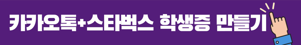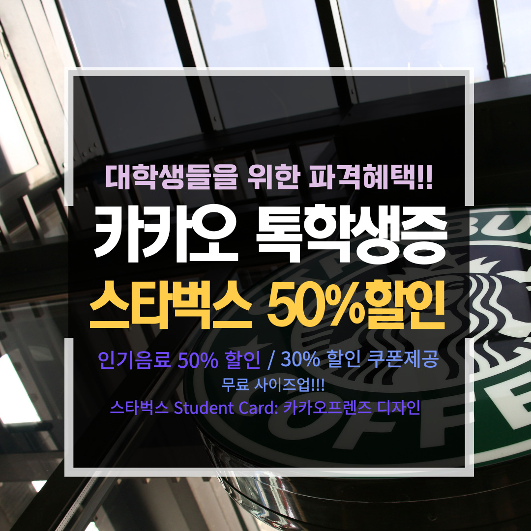 여러분! 오늘은 카카오 톡학생증으로 스타벅스를 50%할인된 가격에 먹을 수 있는 방법을 알려드리겠습니다. 스벅을 사랑하는 대학생이라면 절대 놓칠 수 없는 혜택이니, 서둘러 신청하세요.