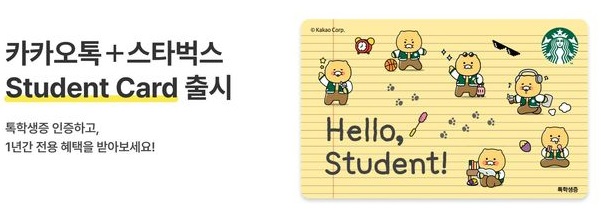 ● 특별한 카드 스타벅스 Student Card: 카카오프렌즈 디자인, 인기 캐릭터 춘식이 모습 담김