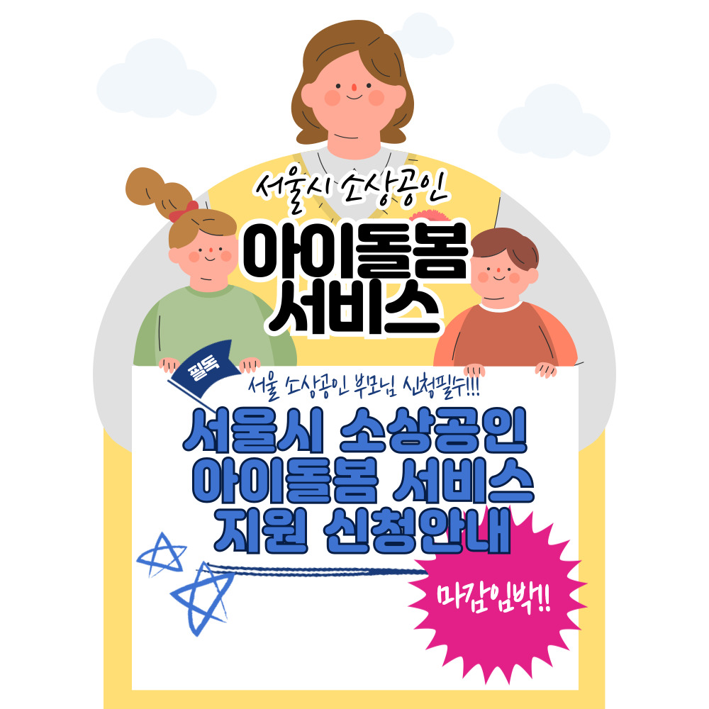 서울시 소상공인 아이돌봄서비스 지원신청 마감이 임박하니 서둘러 신청하세요.