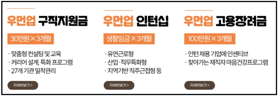 - 국민취업지원제도, 내일체움공제, 실업급여, 청년수당 등 지원 받는 자