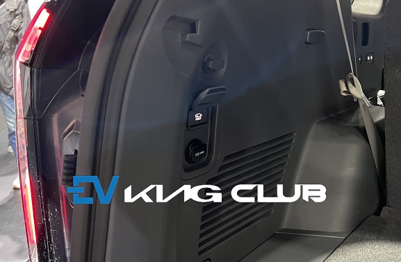 차박 하고나서 일어나 실내에서 트렁크를 열려면 상당히 불편해서 실제로 차박용 차량으로 개조할 때 '실내 트렁크 버튼 만들기'를 많이 합니다. EV9 실내 트렁크 왼쪽에 트렁크 개방 버튼이 보이는데요, 이제는 손쉽게 버튼하나로 트렁크를 열 수 있게 나왔습니다. 차박을 위해 많이 신경쓴 부분이 보입니다.