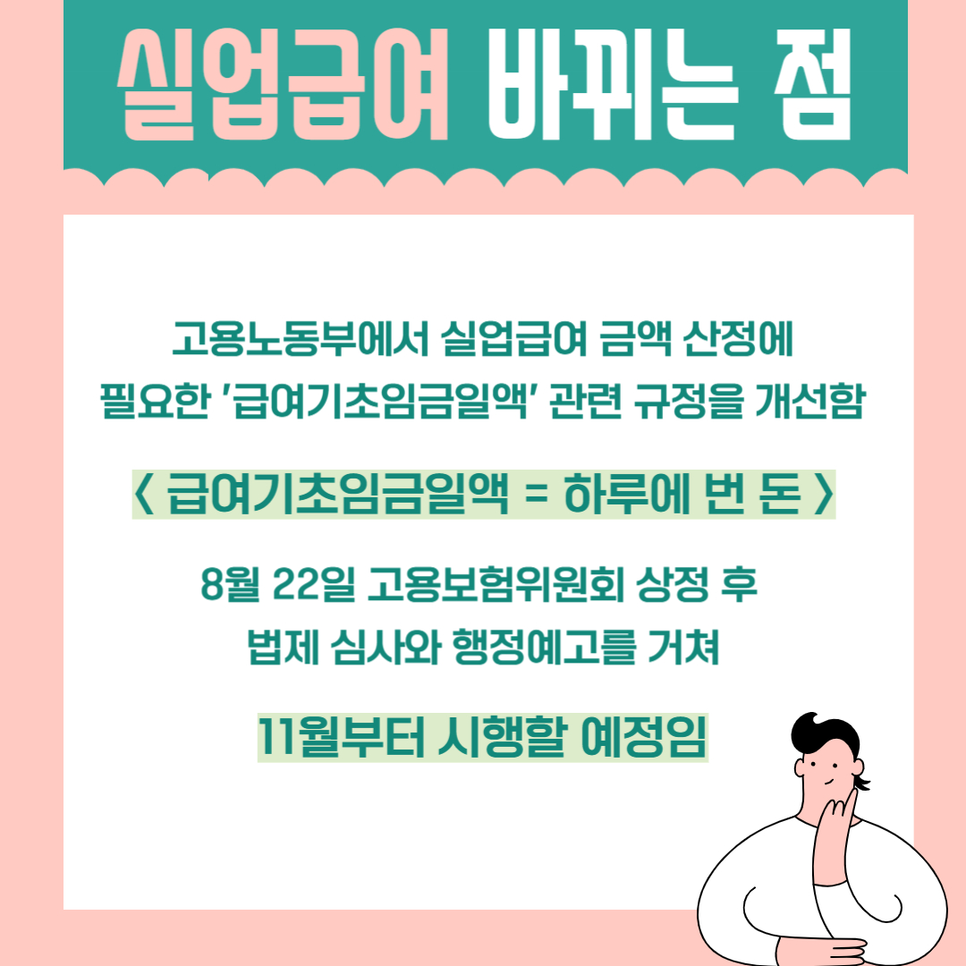 고용노동부에서 실업급여 금액 산정에 필요한 '급여기초임금일액'관련 규정을 개선합니다.